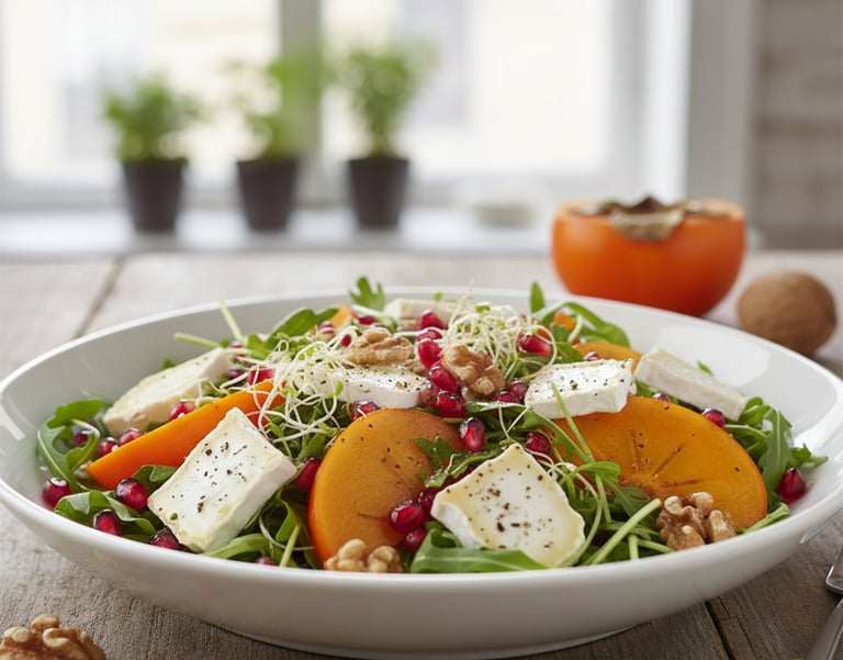 Ensalada Gourmet de Caqui, Queso de Cabra y Frutos Secos